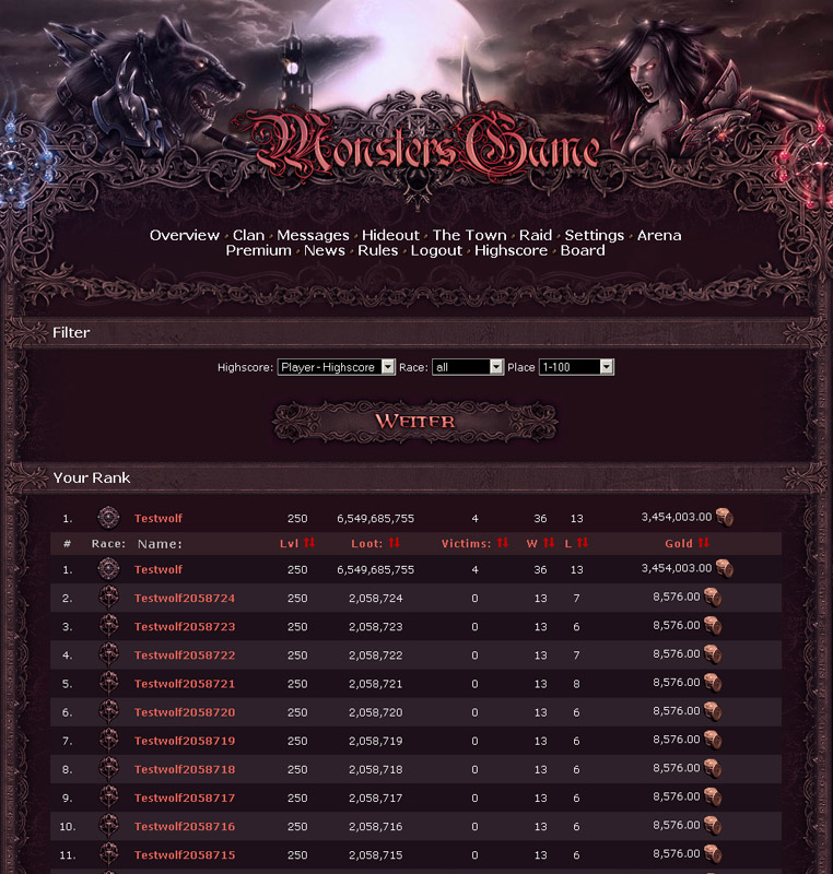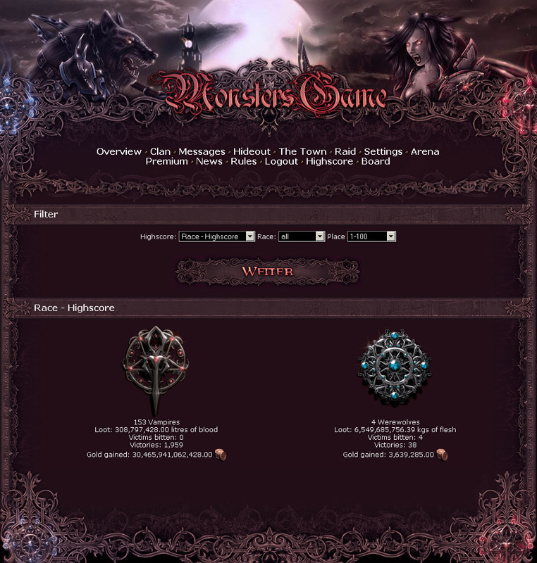 Pe lângă vânătoarea de pe internet poţi să şi ataci direct alţi jucători ai rasei inamice şi să le furi aurul. Mai multe informaţii găseşti la "Statut". Screenshot-uri